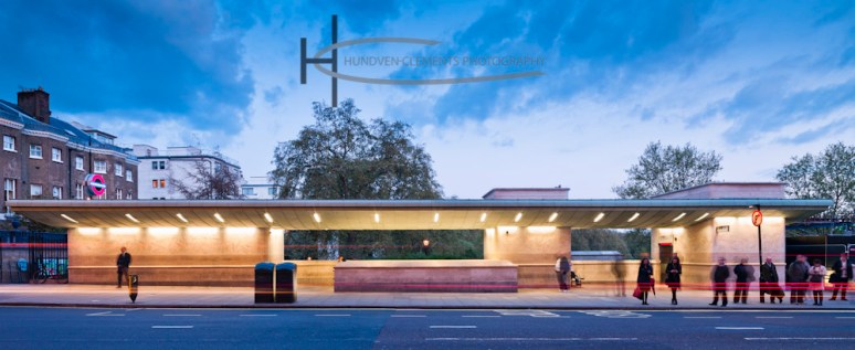 On the photography front you could call it a nightmare location to photograph. With my @HasselbladUK set up on a @manfrotto_tweet and about 50,000 commuters running past every hour, more intent on tweeting than looking out for obstacles, it made for a challenging site. When a quiet period arrived and the sun come out I could guarantee that the 38 bus would roll in to frame. All part of the fun of working in London. I was lucky with a beautiful blue sky as dusk fell over the city.