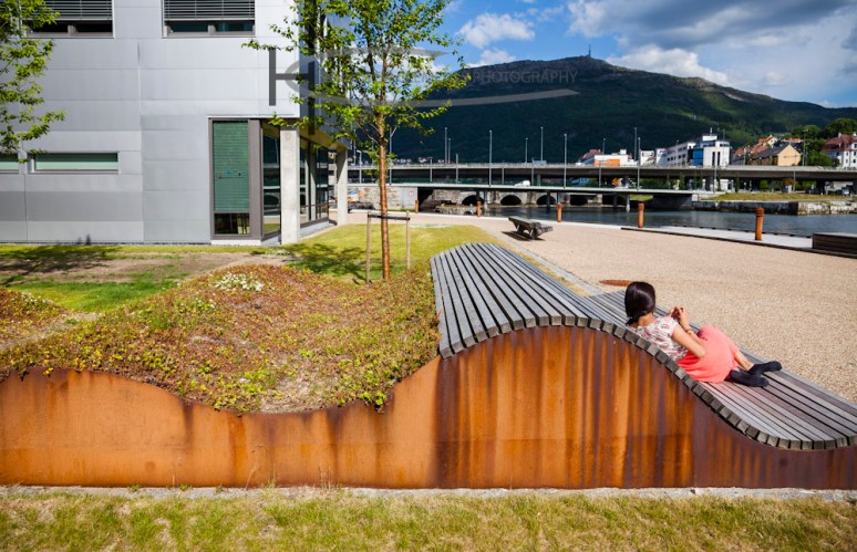 A new development at Marineholmen, opened in Bergen this summer and we have been onsite to investigate. On a sunny day there’s no better place to study or work, that is if you can drag yourself away from the fjord views and exciting interactive landscape designed by Smedsvig Landskapsarkitekter AS.
