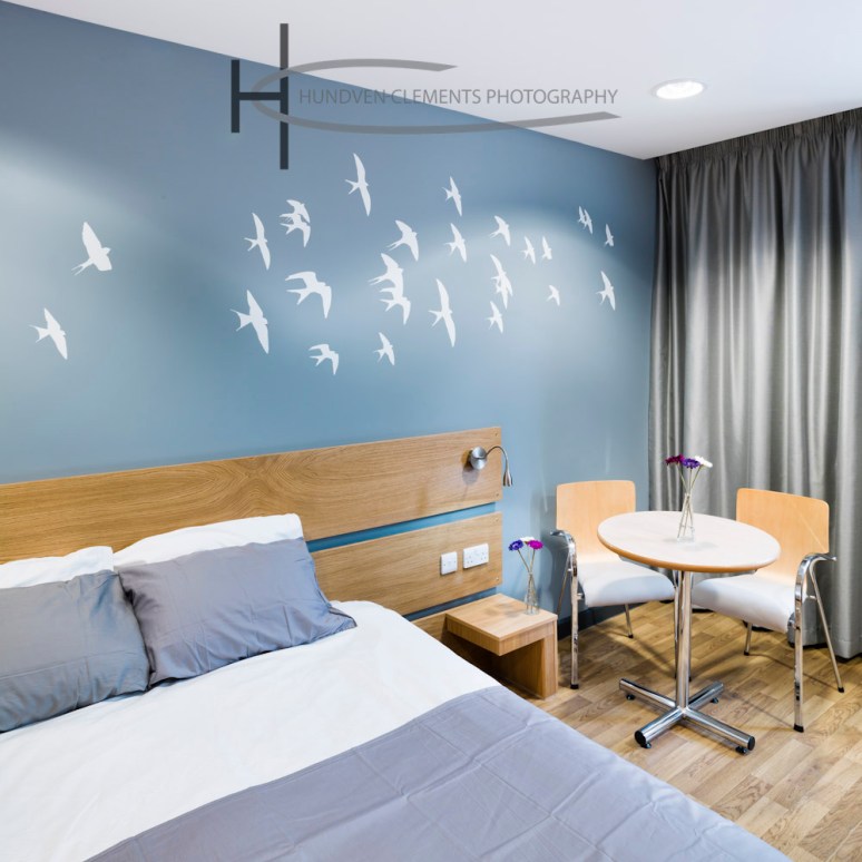 The new project sits nestled in the leafy campus grounds, thriving with international energy, we rarely met an British student! The building is an exciting amalgamation of styles, blending traditional brickwork (to maintain campus design integration and cost efficiency) with contemporary zinc cladding. Student diggs have come a long way since we were at University! We especially enjoyed the playful graphics on the wall and the fact that on-suite sinks have been reinforced to withstand the weight of a young amorous lady!