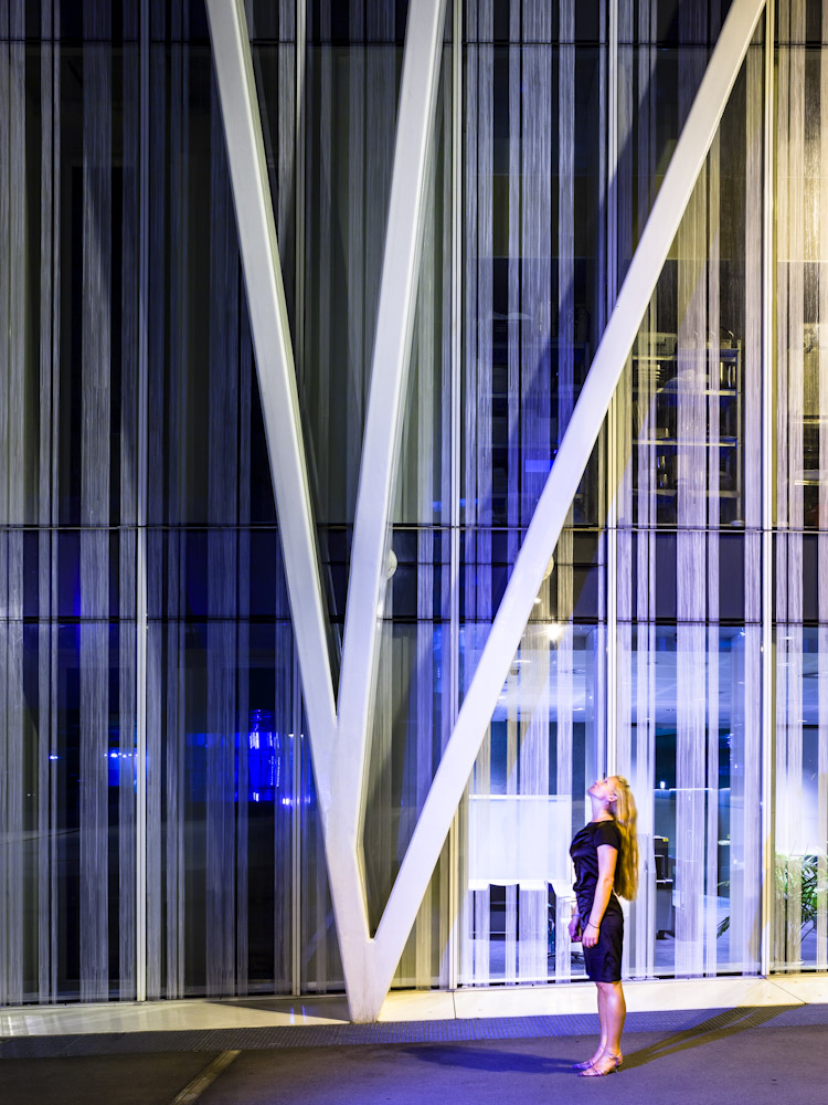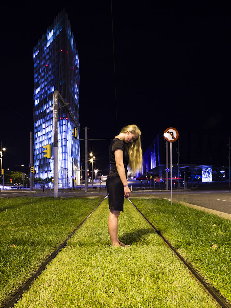 We have been experimenting with some new ideas combing the isolated female form, juxtaposed against iconic architecture at night. The first images below were produced in Barcelona at the Diagonal Zero Zero Tower designed by EMBA and the Forum building by Herzog & de Meuron.