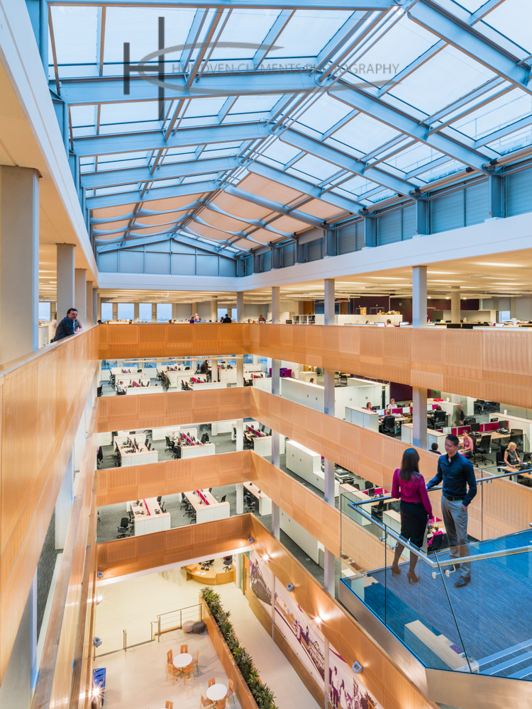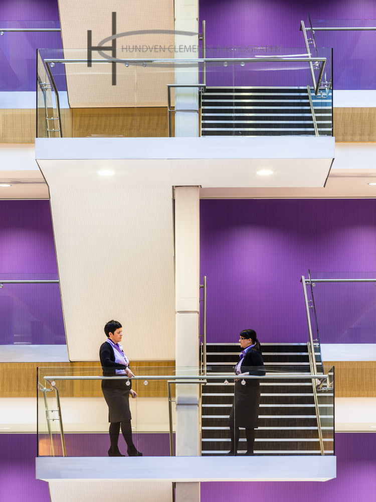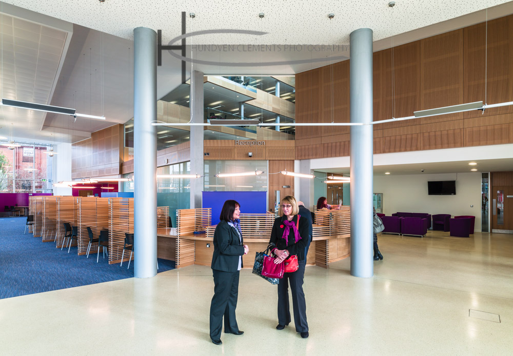 We were recently commissioned by Cartwright Pickard Architects to photograph one of their most ambitious projects to date. The Doncaster Civic Office BREEAM Excellent workplace is designed for 1,200 staff. The council chamber adds a touch of drama in an area of the town that is surrounded by oppressive 60s / 70s concrete structures. Clad with coloured glazed terracotta baguettes and a large glazed corner window overlooking the new square it allows passers by to observe democracy in action.
