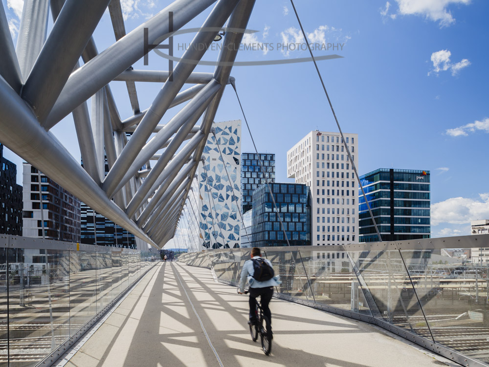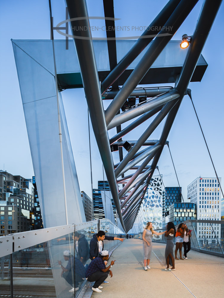 The Oslo Bjørvika district is currently undergoing a dramatic transformation. The Operakvatalet (as seen on the horizon in the first image) has been developed in the centre of Oslo city, located between the main railway line and the fjord. As a new exciting city district is created, the demand for improved access and an appropriately exciting bridge design is required. This task fell on the joint shoulders of L2 Arkitekter AS and Rambøll Norge AS.