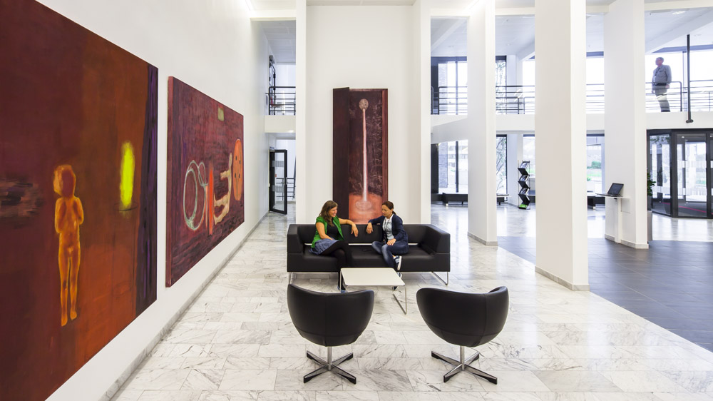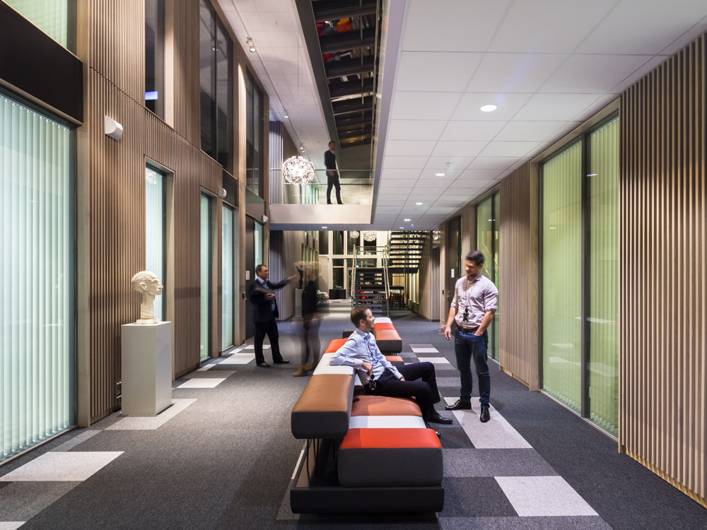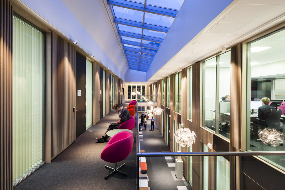 A wide multi level open plan atrium encourages idea exchanges and spontaneous meetings.
