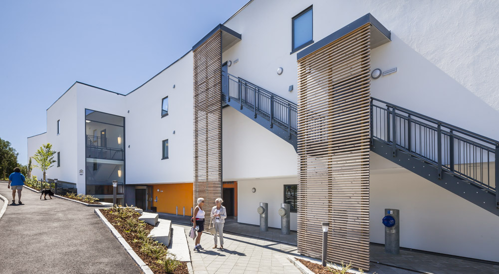 The project integrates contemporary living spaces with large breakout balconies and communal play areas. Although according to the residents of which the majority are pensioners the bouncing horse will receive little attention except when grand children visit!