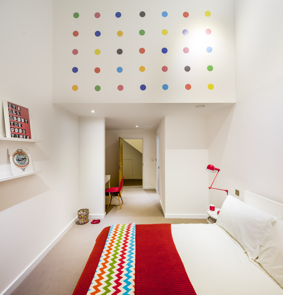Looking up the stairs at The Woods residential property designed by Scott Brownrigg, Bedfordshire, UK.