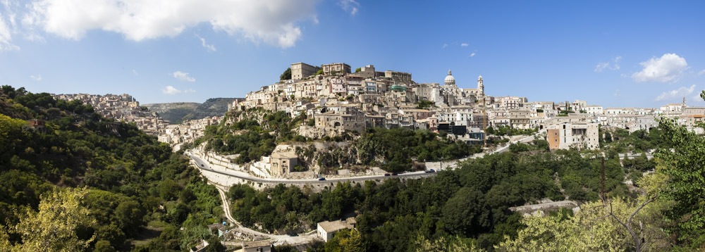 The Cathedral of San Giovanni Battista is the main monument of Ragusa Superiore to the right of centre. Here’s a panoramic, stitched landscape, no tripod involved so we’re quite impressed with photoshops job!