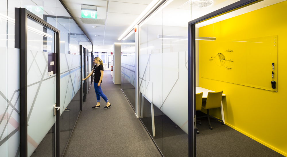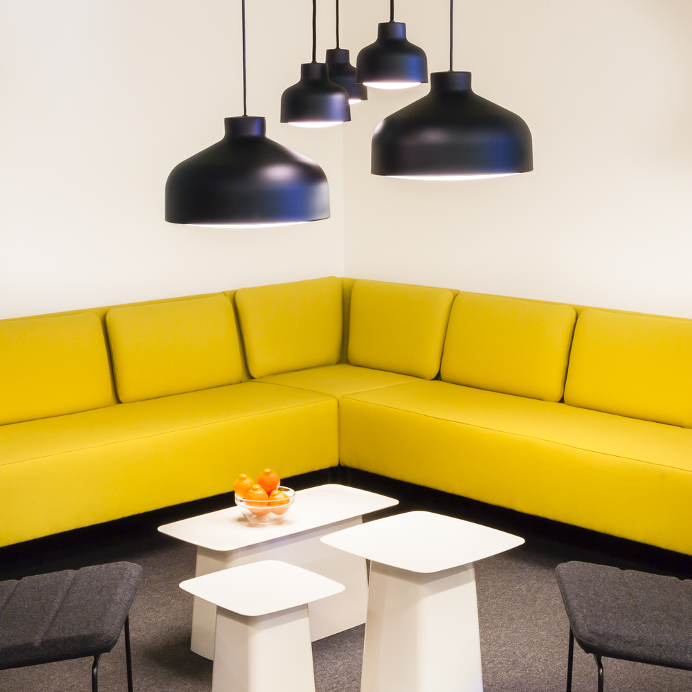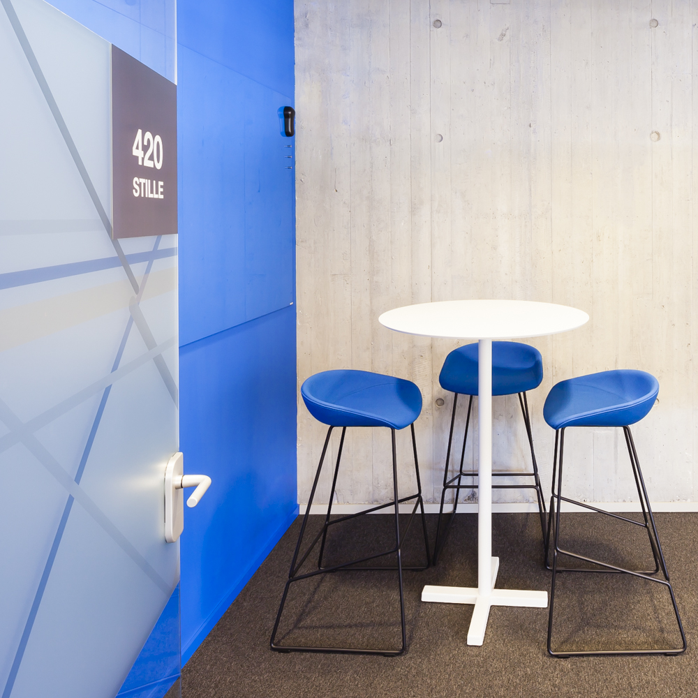 Providing a stimulating yet functional office environment is not as easy as it sounds. Here Link Arkitektur have played with the idea of intertwined energy forms and translated this into primary colours and graphics.