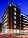 Overview at dusk of Price Waterhouse Coopers HQ designed by Ramboll, Bergen, Norway.